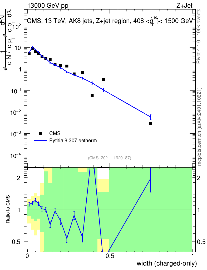 Lines: data, pythia8 8.307 eetherm |