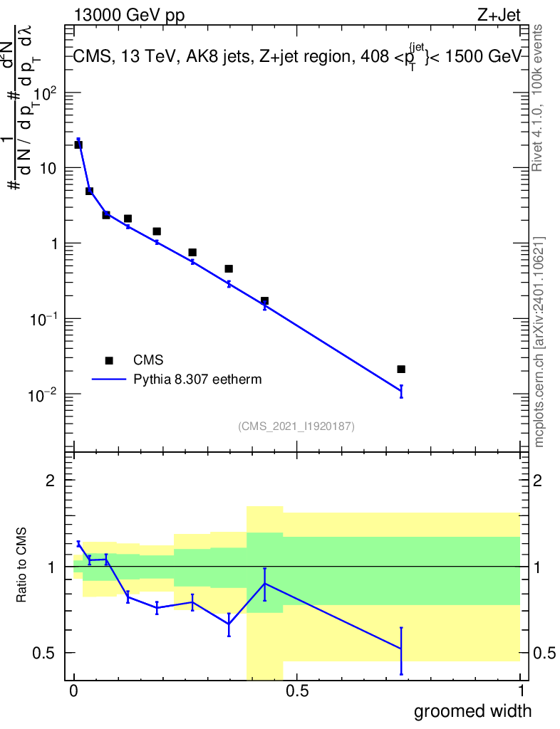 Lines: data, pythia8 8.307 eetherm |
