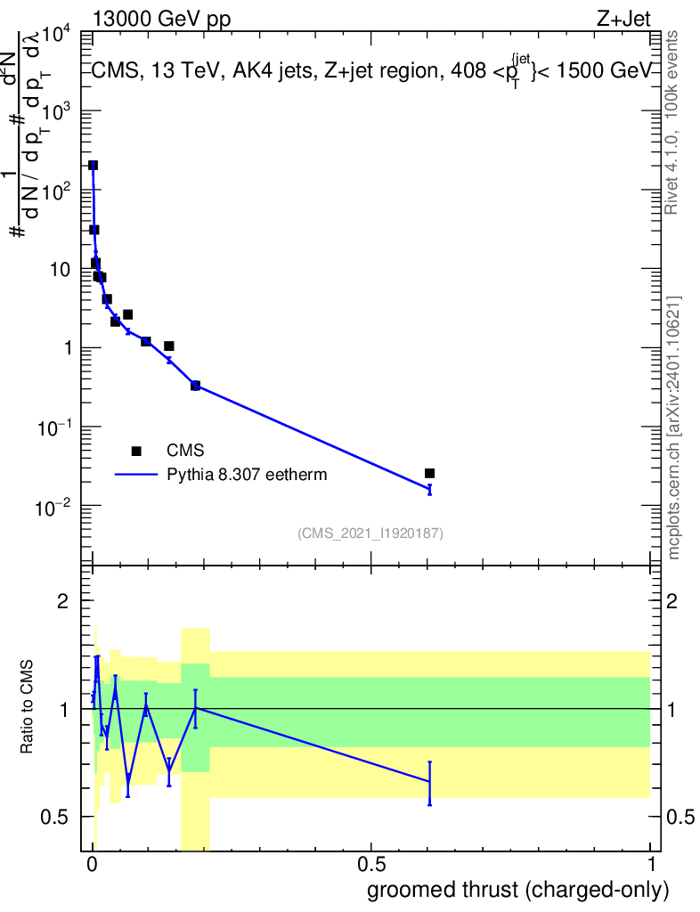 Lines: data, pythia8 8.307 eetherm |