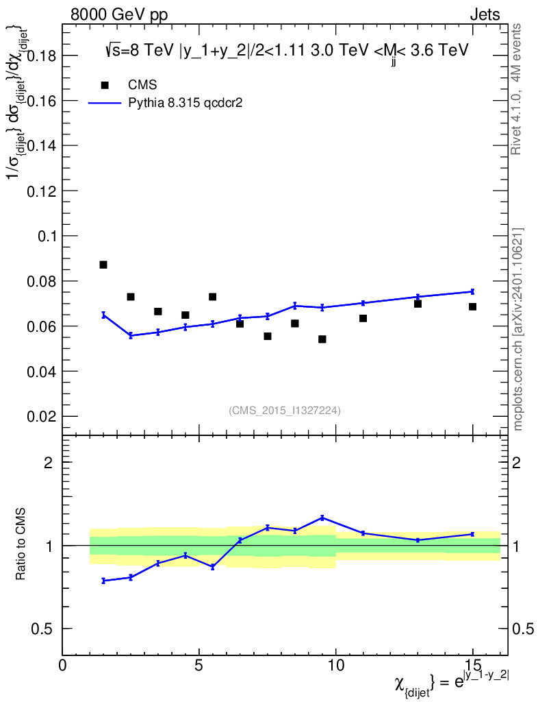 Lines: data, pythia8 8.315 qcdcr2 |