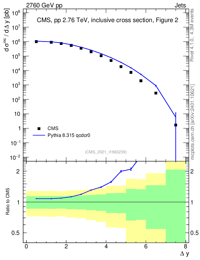 Lines: data, pythia8 8.315 qcdcr0 |