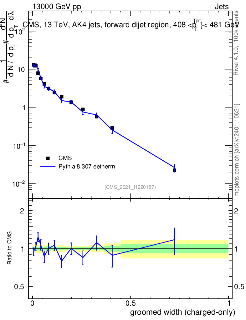 Lines: data, pythia8 8.307 eetherm |