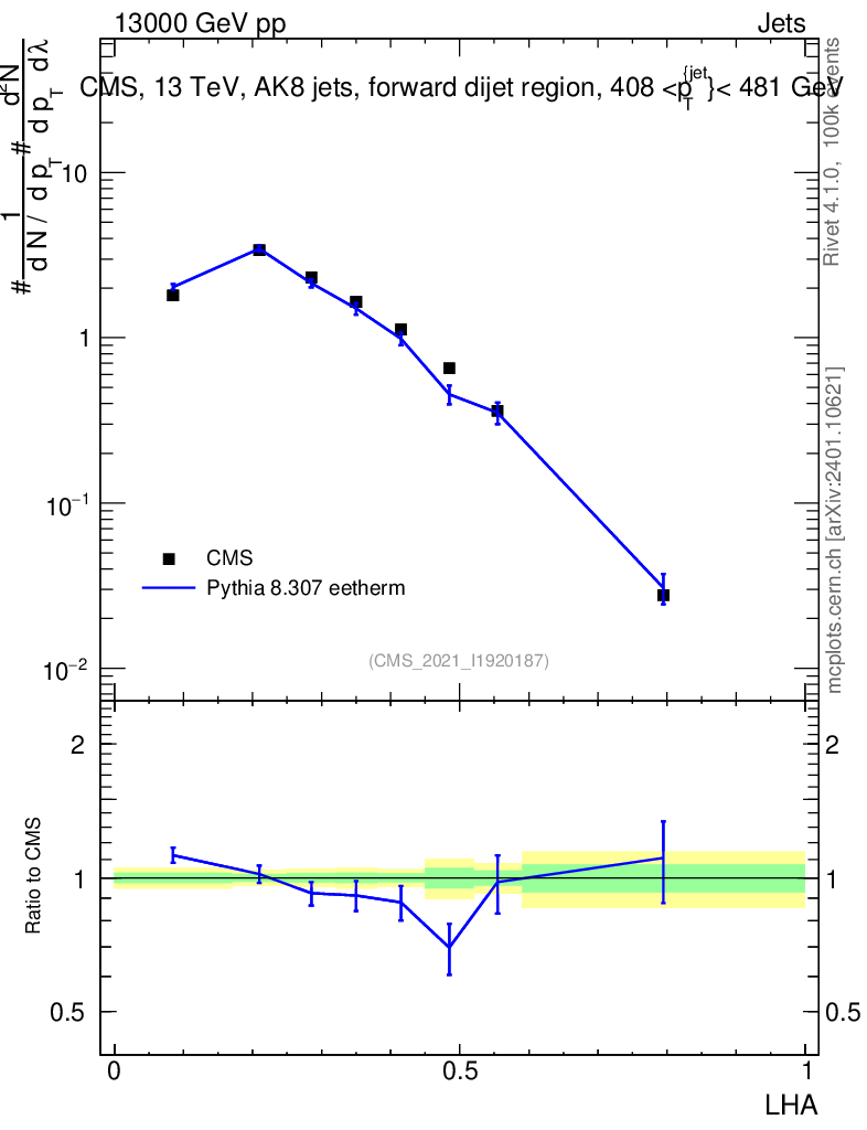 Lines: data, pythia8 8.307 eetherm |