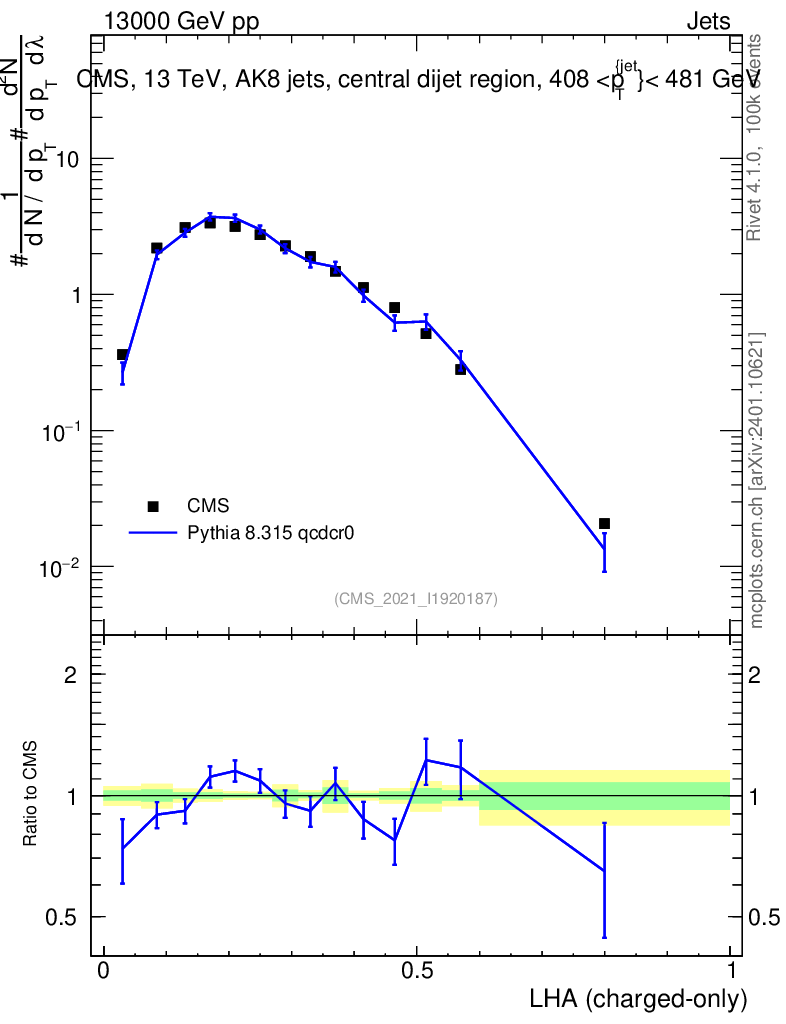 Lines: data, pythia8 8.315 qcdcr0 |