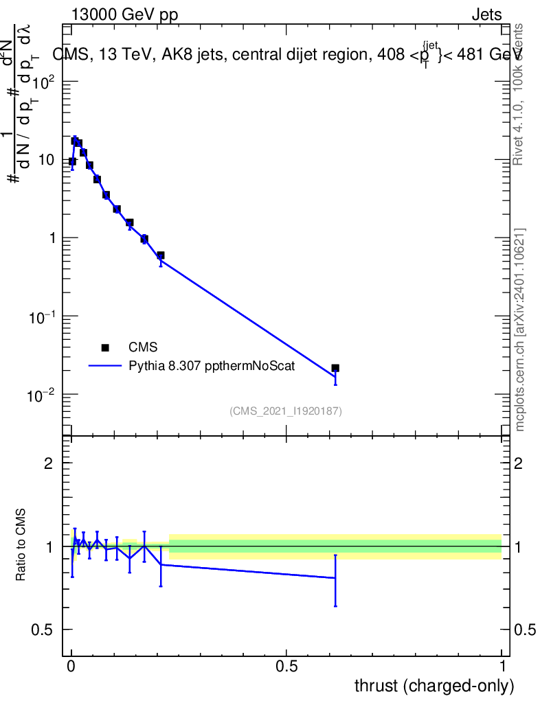 Lines: data, pythia8 8.307 ppthermNoScat |