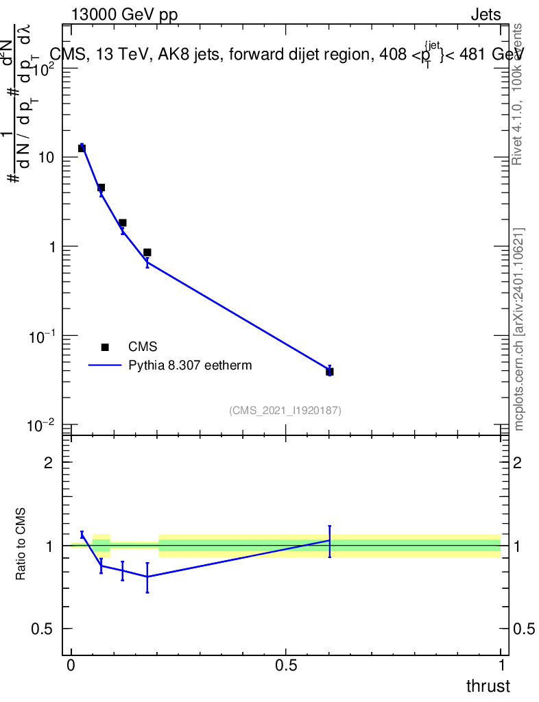 Lines: data, pythia8 8.307 eetherm |