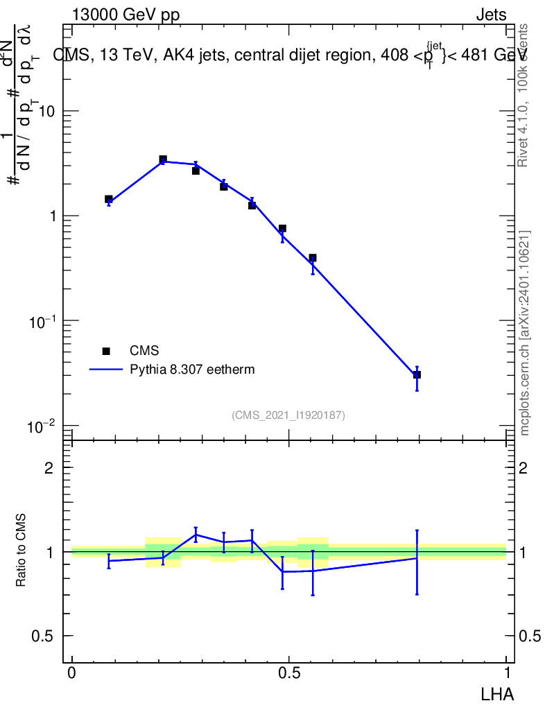 Lines: data, pythia8 8.307 eetherm |