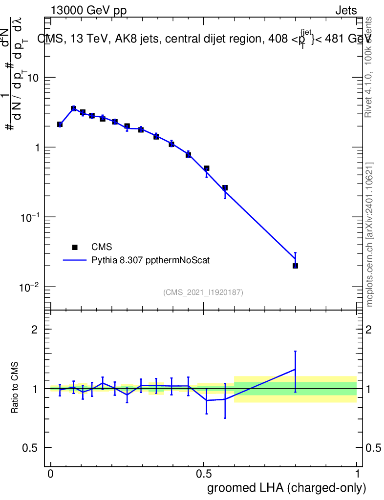 Lines: data, pythia8 8.307 ppthermNoScat |