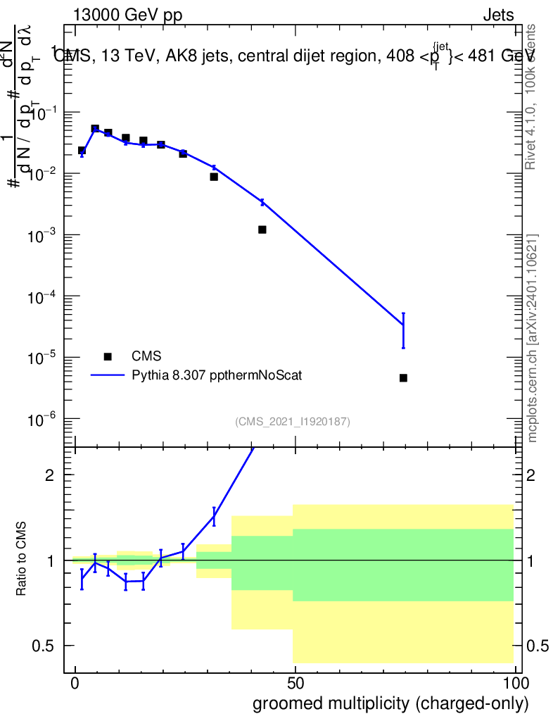 Lines: data, pythia8 8.307 ppthermNoScat |
