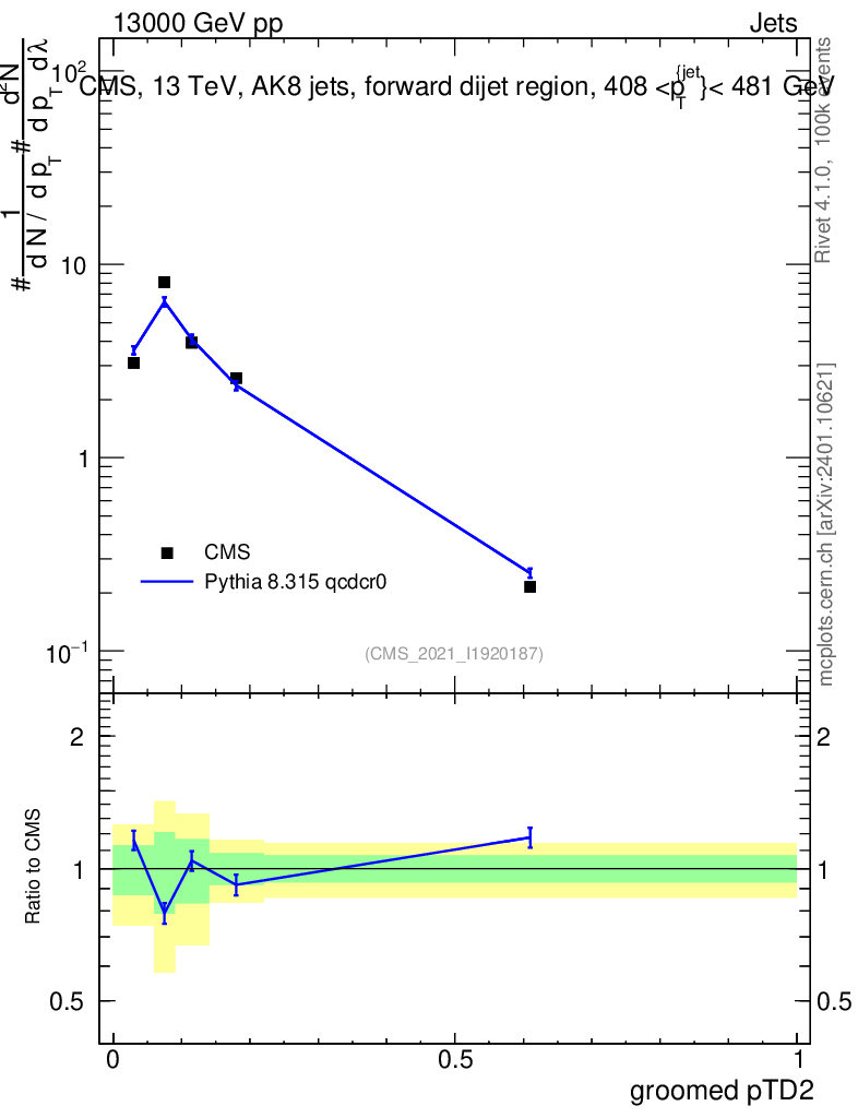 Lines: data, pythia8 8.315 qcdcr0 |