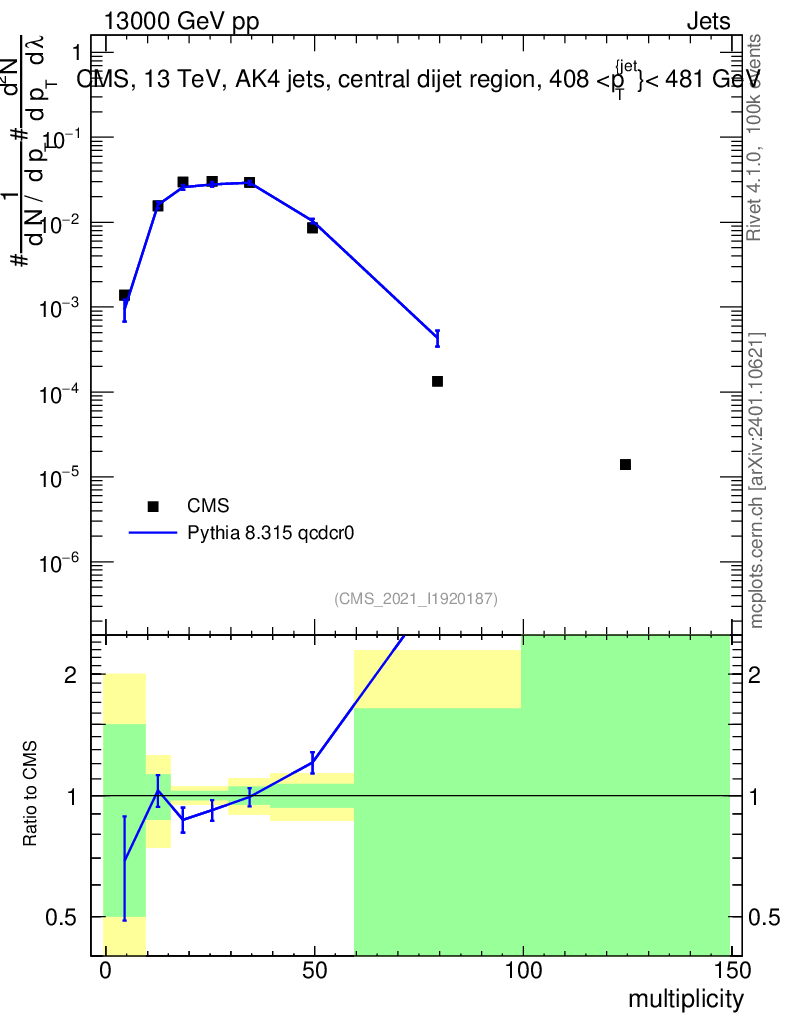 Lines: data, pythia8 8.315 qcdcr0 |