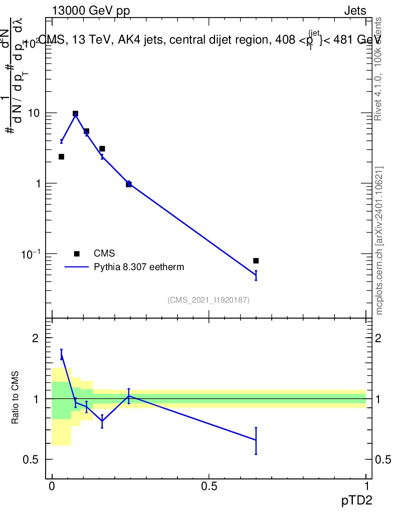 Lines: data, pythia8 8.307 eetherm |