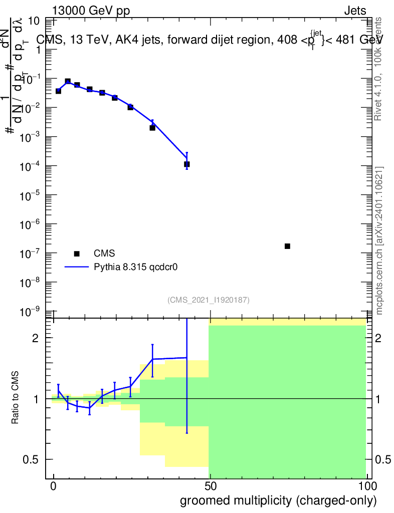 Lines: data, pythia8 8.315 qcdcr0 |