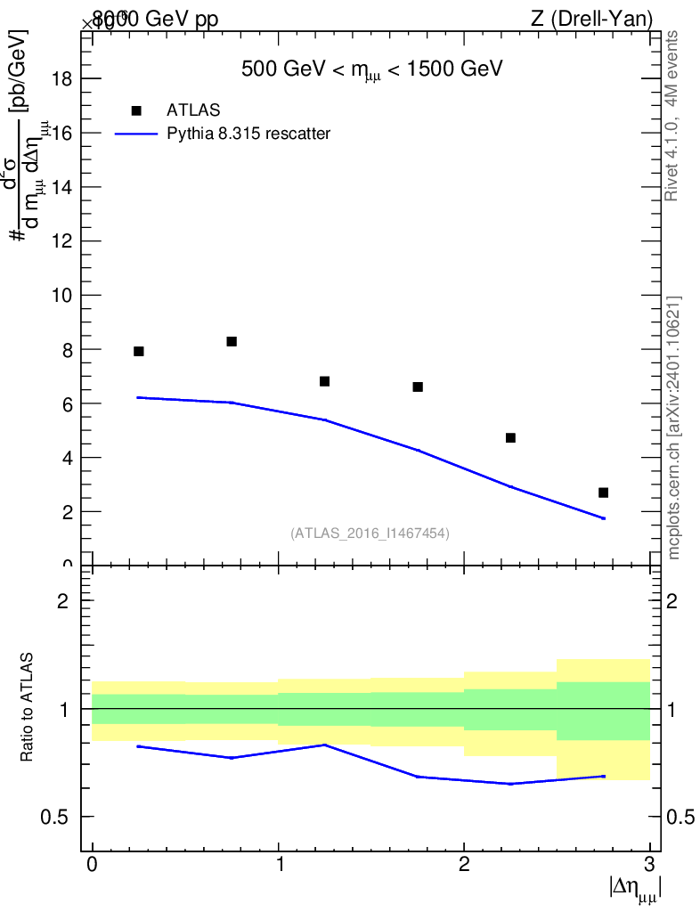 Lines: data, pythia8 8.315 rescatter |