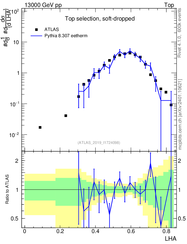 Lines: data, pythia8 8.307 eetherm |