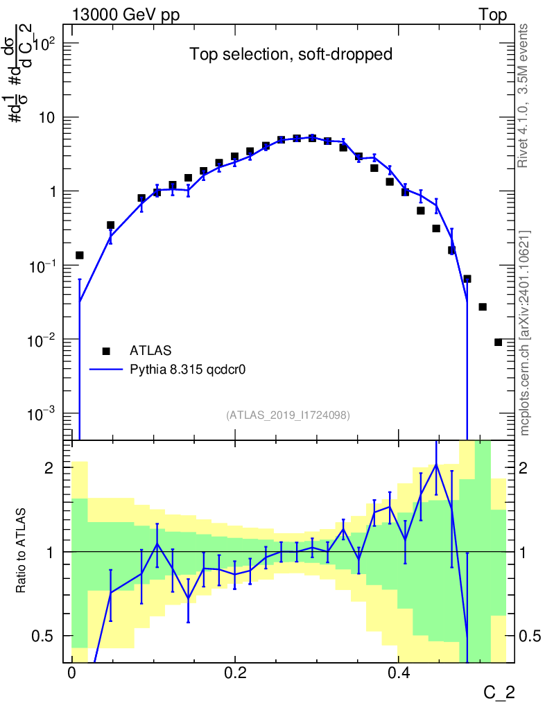 Lines: data, pythia8 8.315 qcdcr0 |