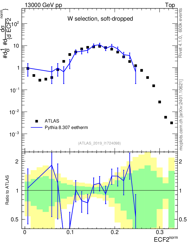 Lines: data, pythia8 8.307 eetherm |