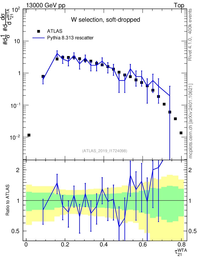 Lines: data, pythia8 8.313 rescatter |