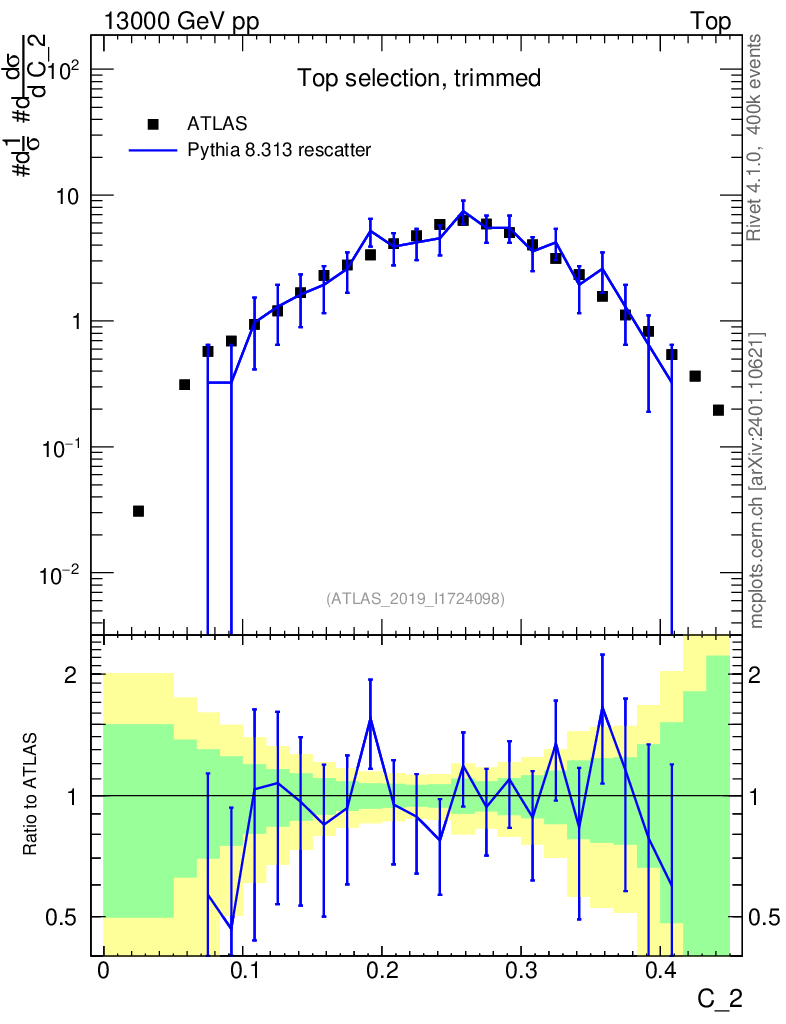 Lines: data, pythia8 8.313 rescatter | compare with other tunes