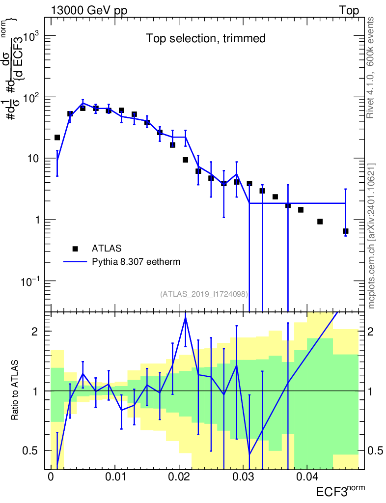 Lines: data, pythia8 8.307 eetherm |