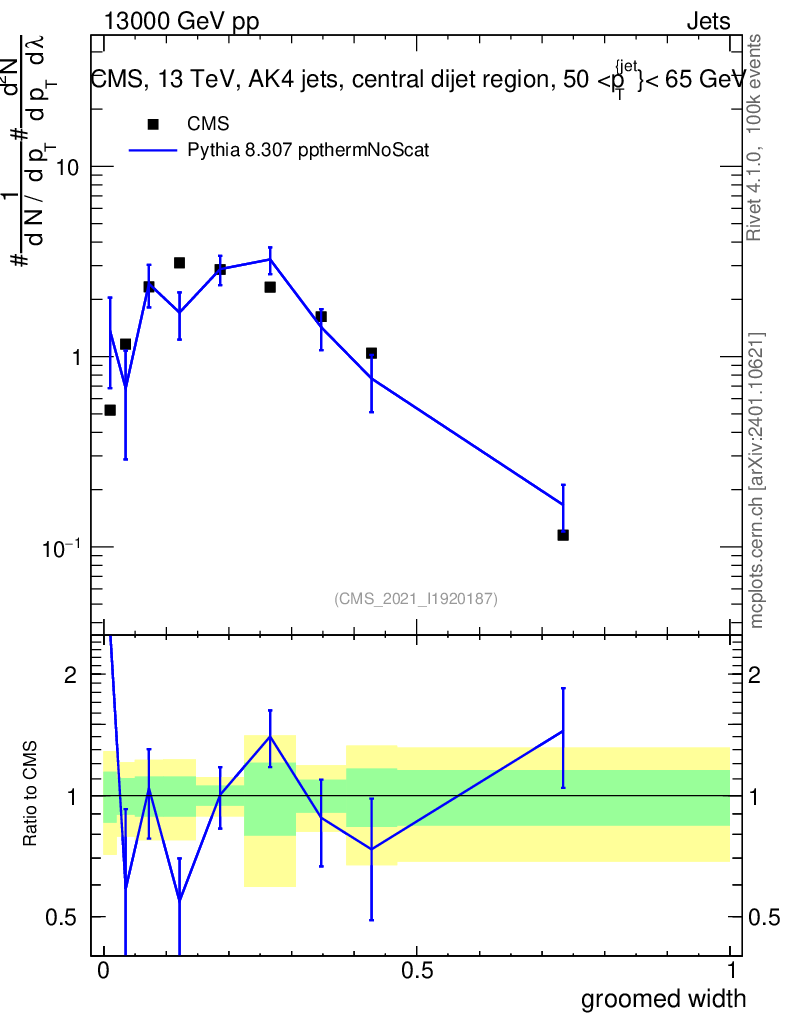 Lines: data, pythia8 8.307 ppthermNoScat |