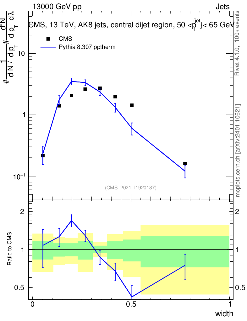 Lines: data, pythia8 8.307 pptherm |