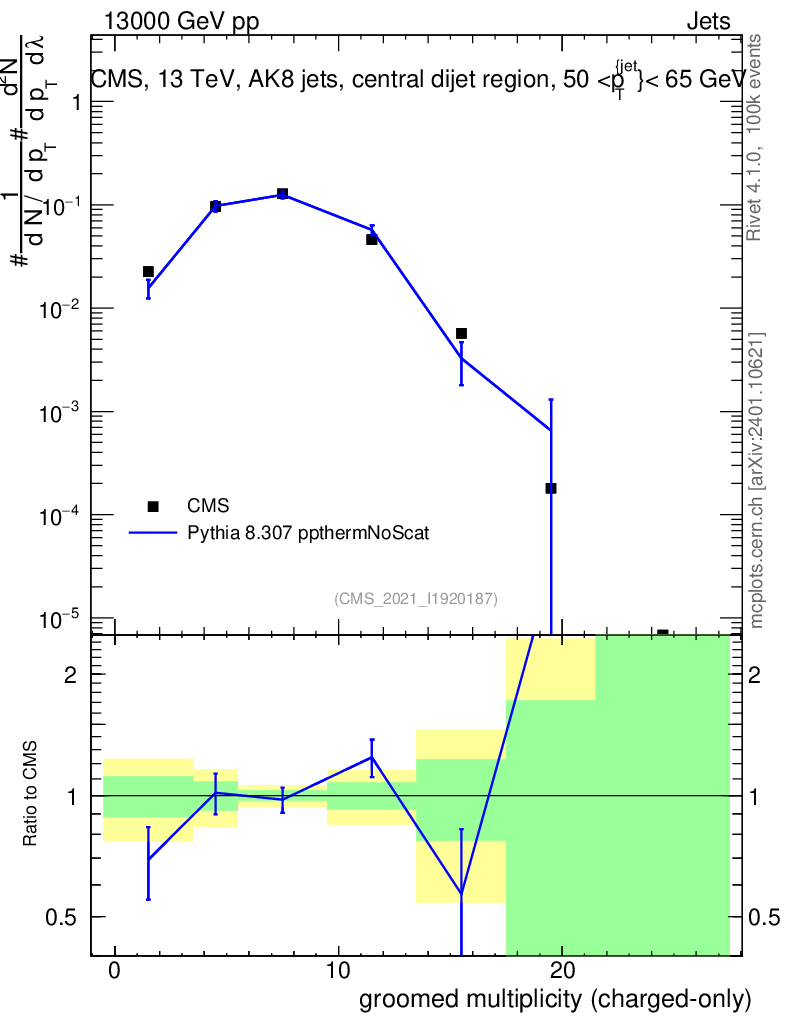 Lines: data, pythia8 8.307 ppthermNoScat |