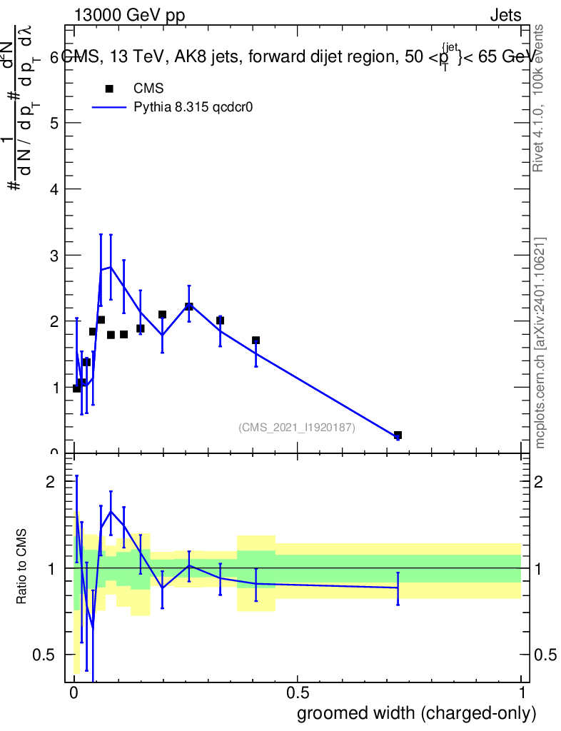 Lines: data, pythia8 8.315 qcdcr0 |