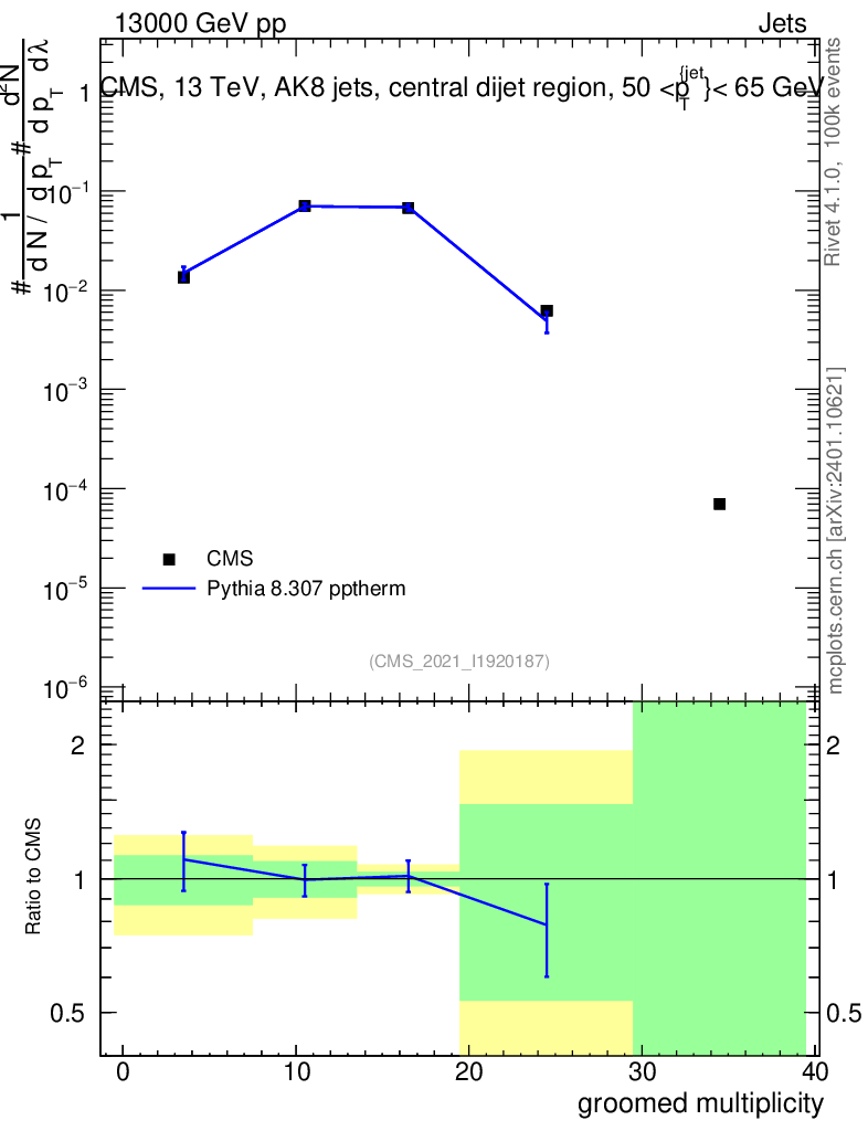 Lines: data, pythia8 8.307 pptherm |