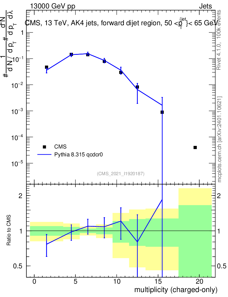 Lines: data, pythia8 8.315 qcdcr0 |