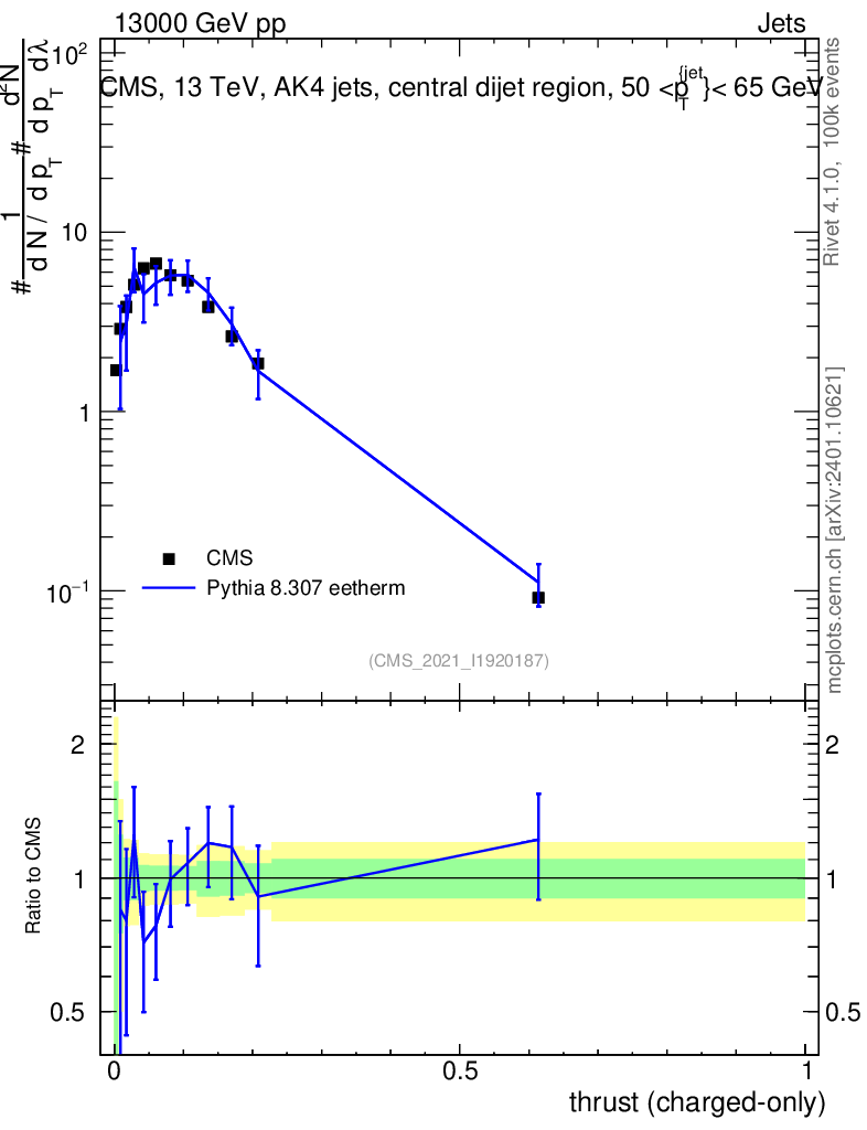Lines: data, pythia8 8.307 eetherm |