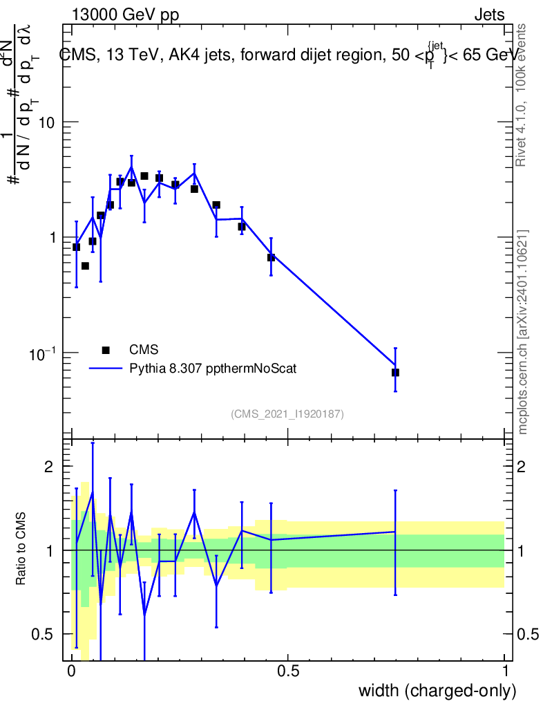 Lines: data, pythia8 8.307 ppthermNoScat |