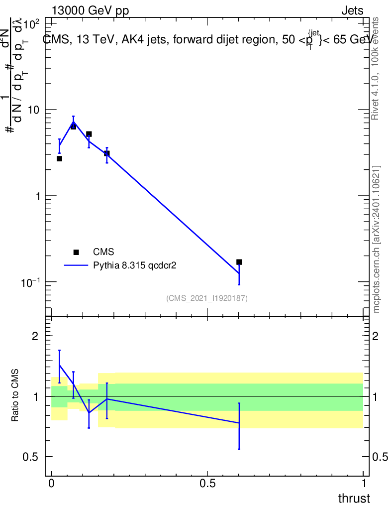 Lines: data, pythia8 8.315 qcdcr2 |