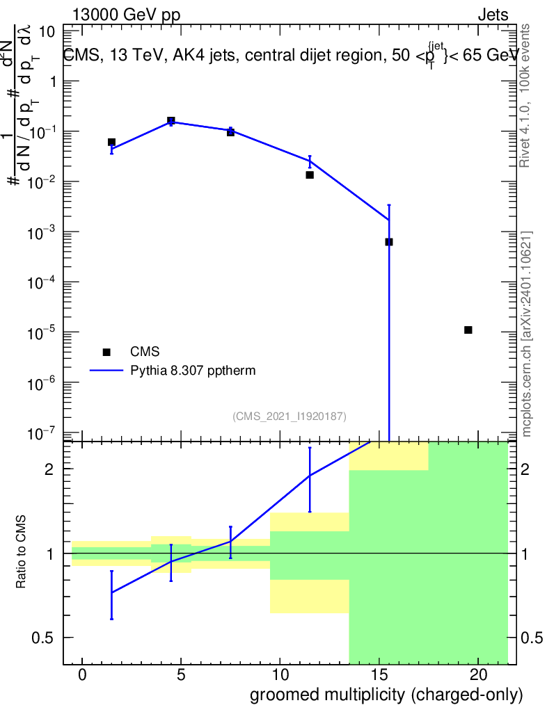Lines: data, pythia8 8.307 pptherm |