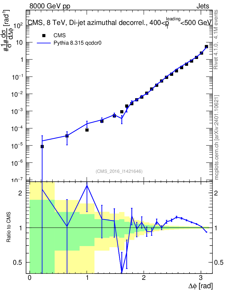 Lines: data, pythia8 8.315 qcdcr0 |