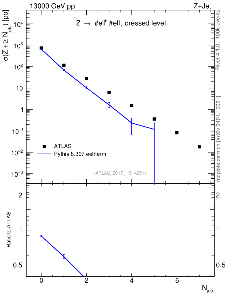 Lines: data, pythia8 8.307 eetherm |