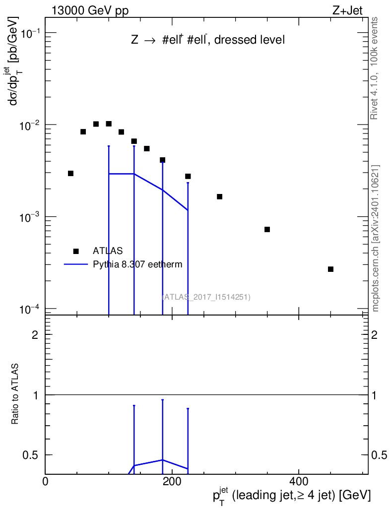 Lines: data, pythia8 8.307 eetherm |