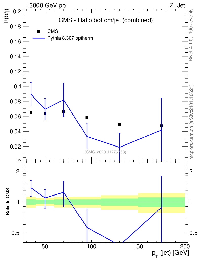 Lines: data, pythia8 8.307 pptherm |