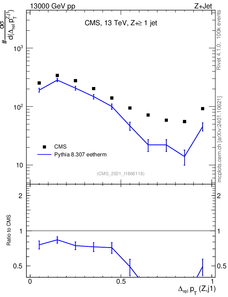 Plot of zj.dpt.rel in 13000 GeV pp collisions
