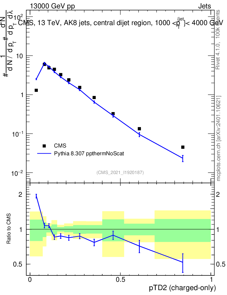 Lines: data, pythia8 8.307 ppthermNoScat |