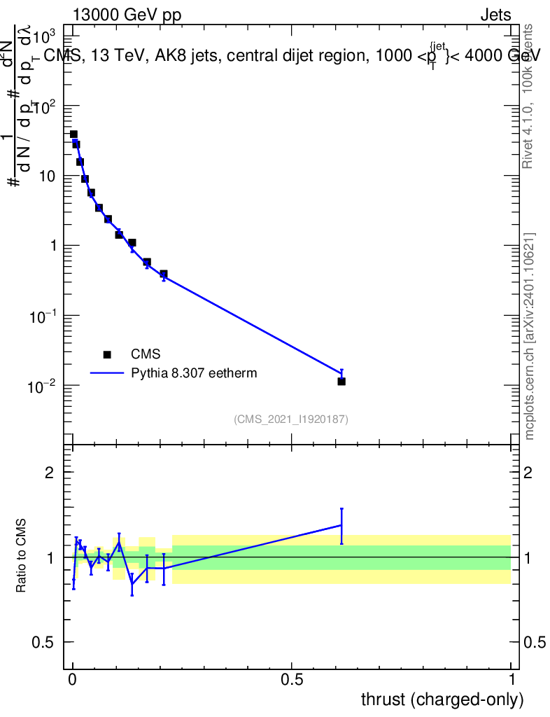 Lines: data, pythia8 8.307 eetherm |