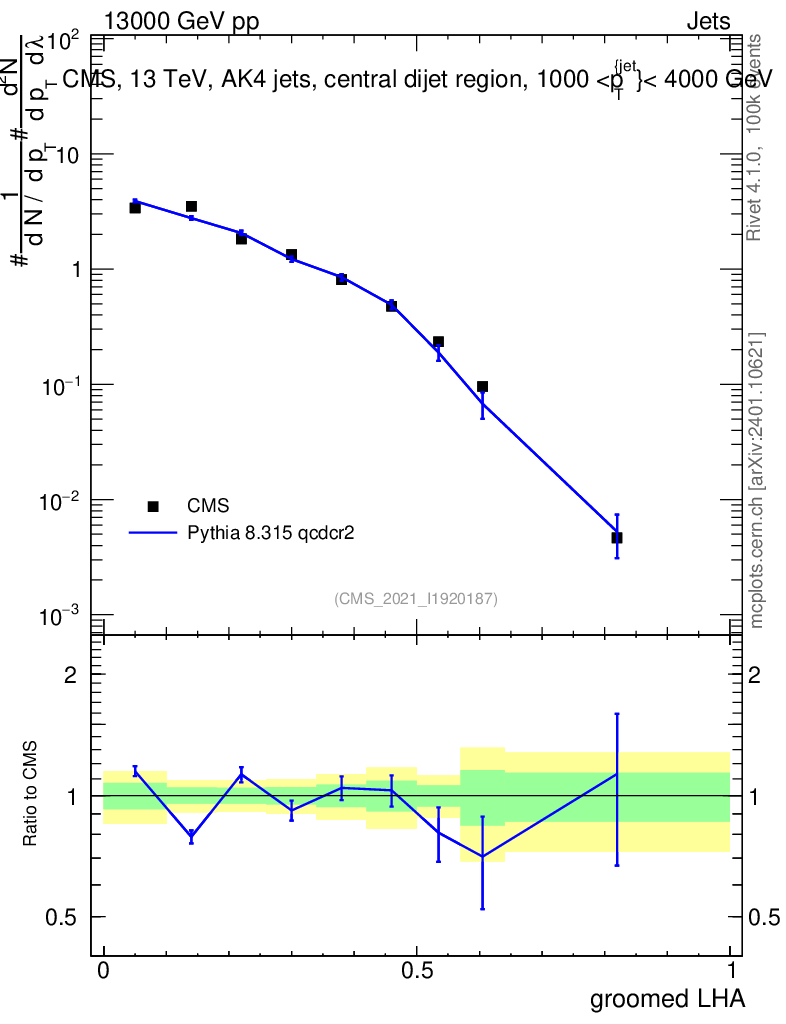 Lines: data, pythia8 8.315 qcdcr2 |