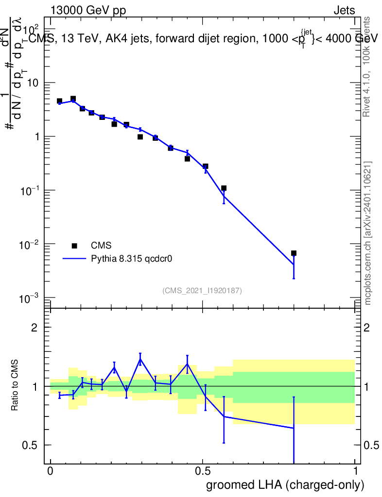 Lines: data, pythia8 8.315 qcdcr0 |