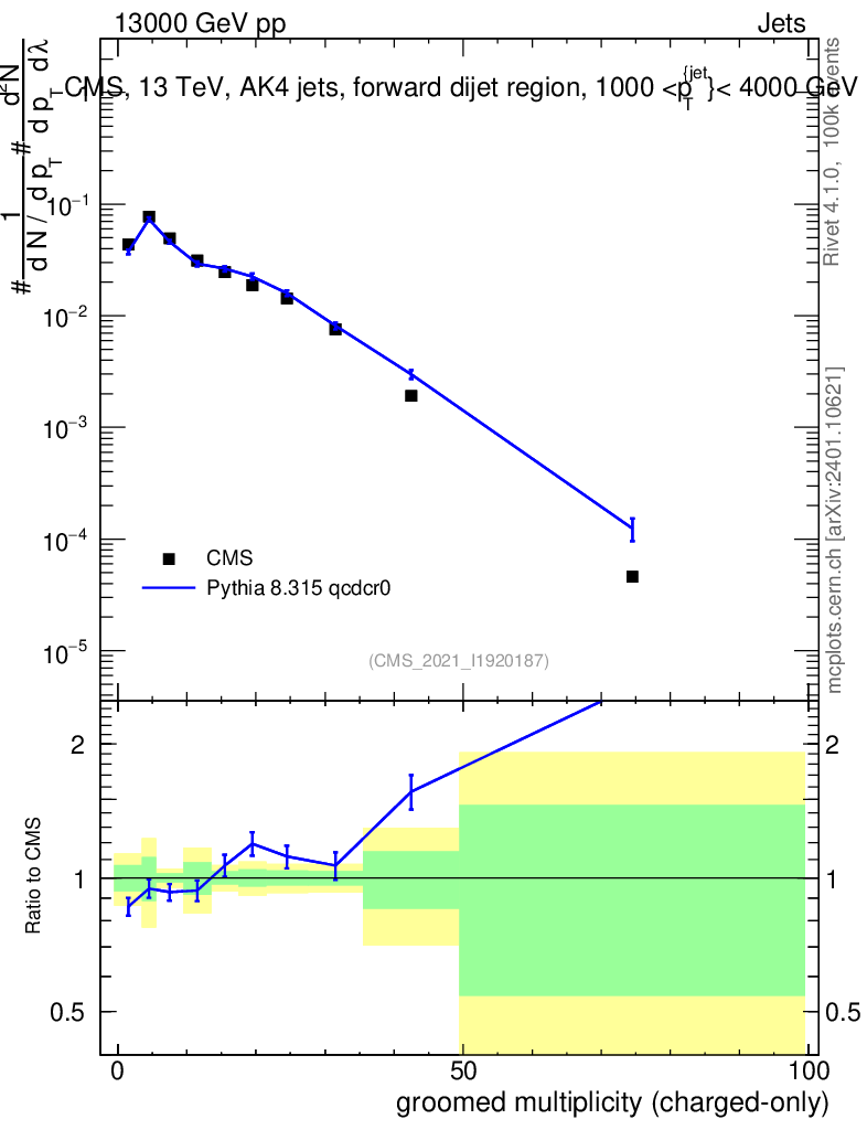 Lines: data, pythia8 8.315 qcdcr0 |