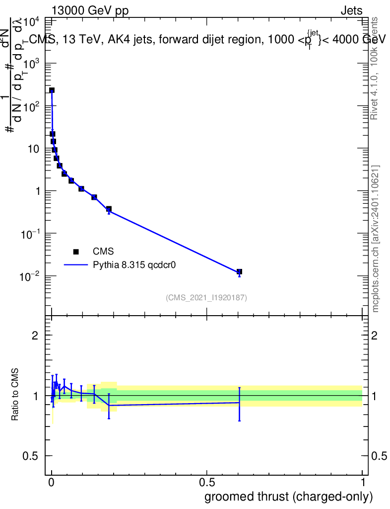 Lines: data, pythia8 8.315 qcdcr0 |