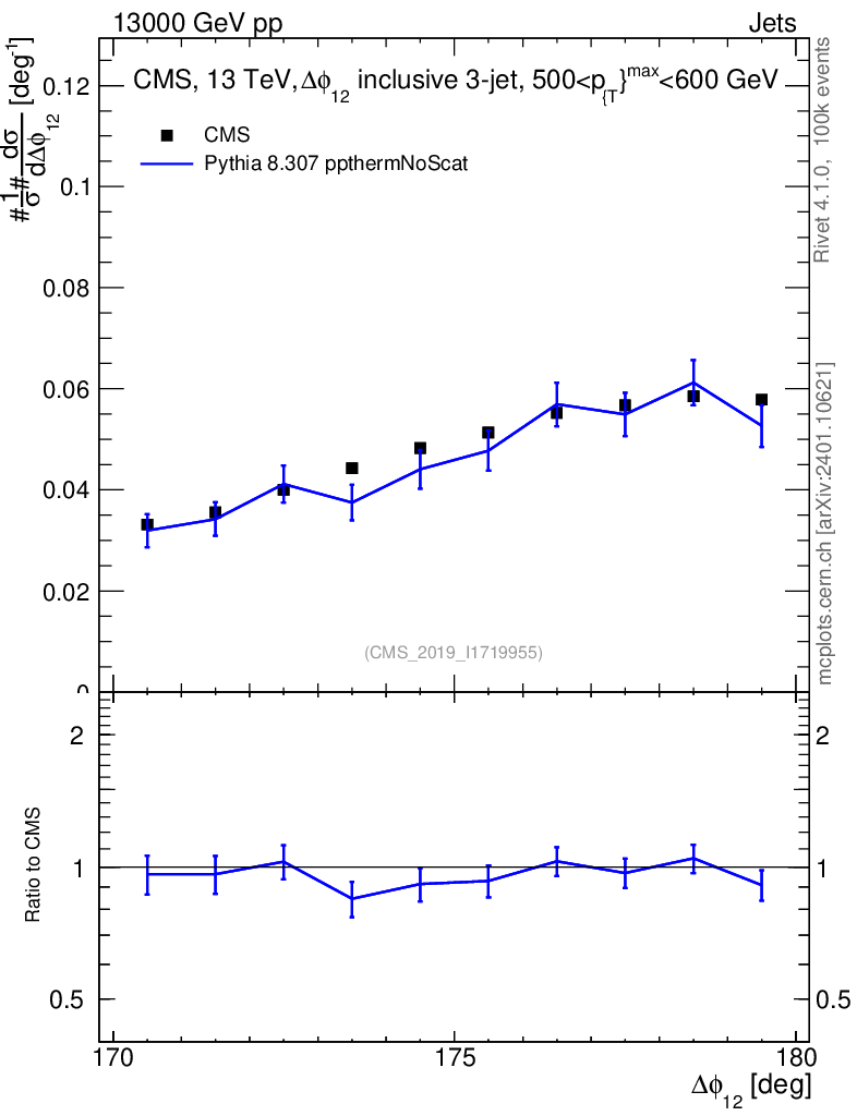Lines: data, pythia8 8.307 ppthermNoScat |