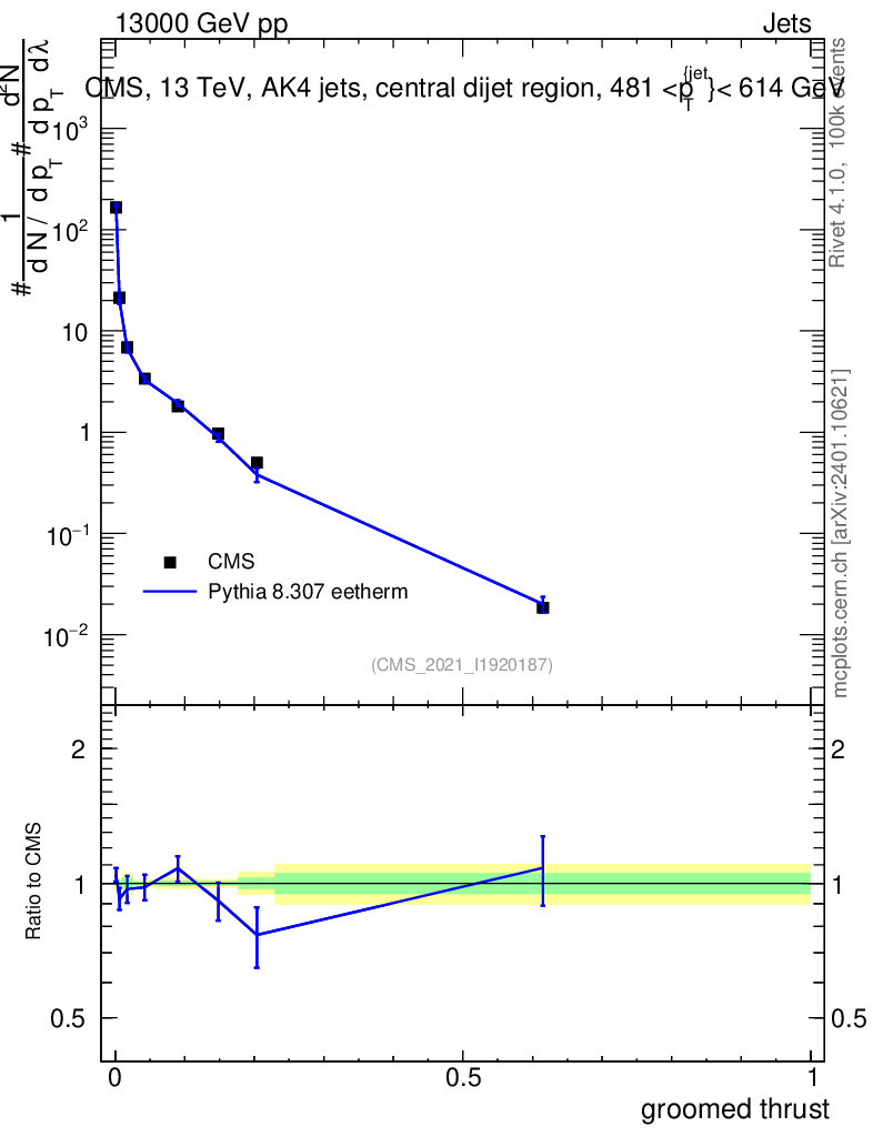 Lines: data, pythia8 8.307 eetherm |