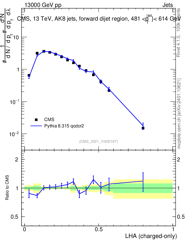 Lines: data, pythia8 8.315 qcdcr2 |