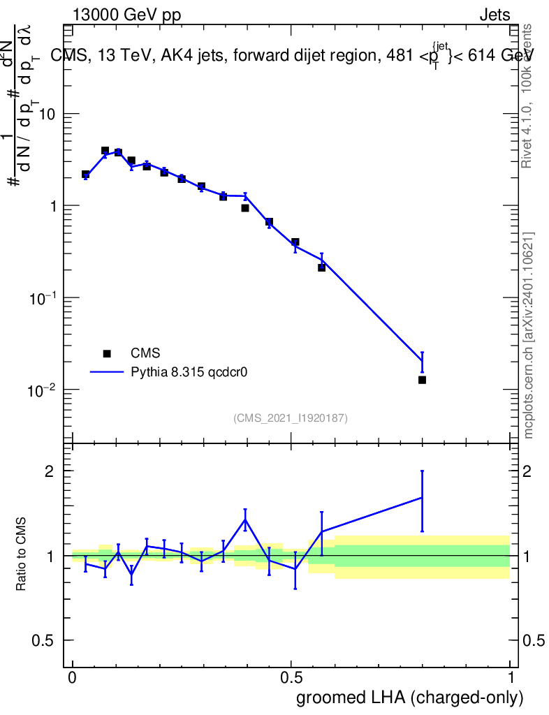 Lines: data, pythia8 8.315 qcdcr0 |