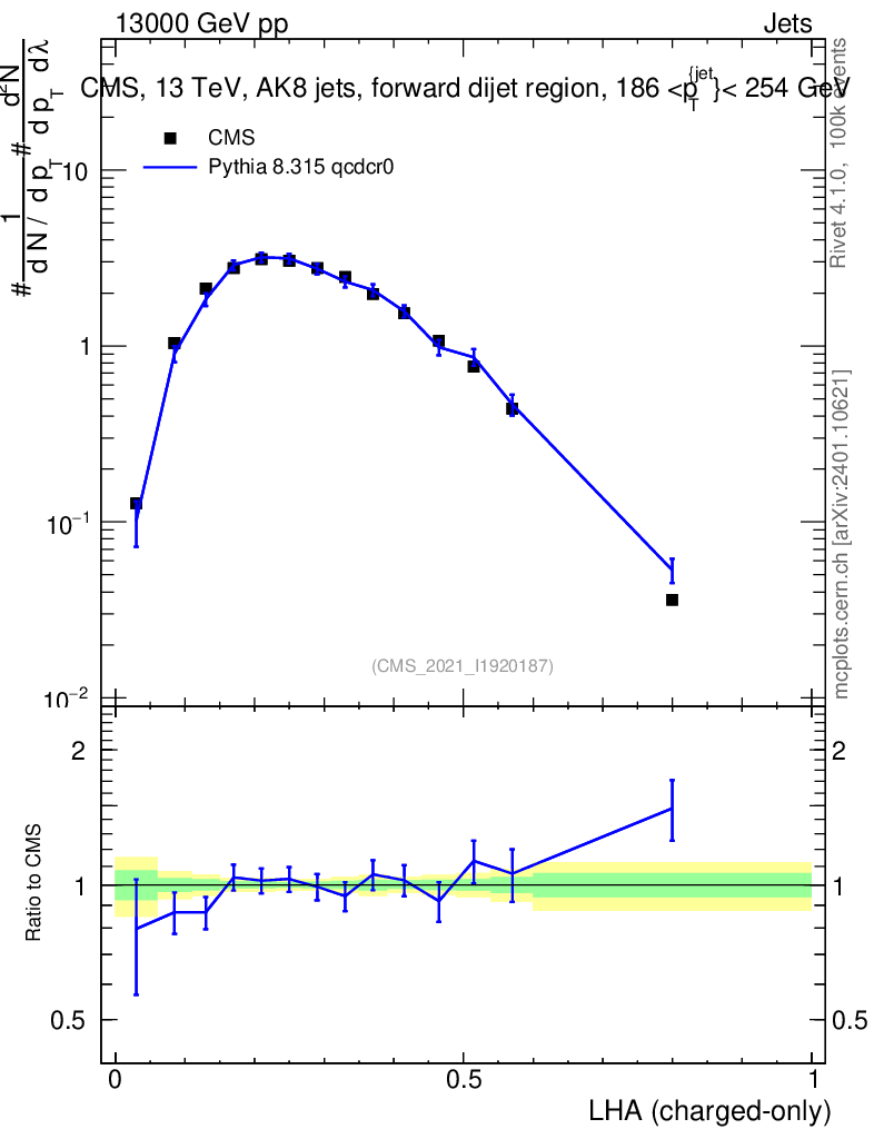 Lines: data, pythia8 8.315 qcdcr0 |